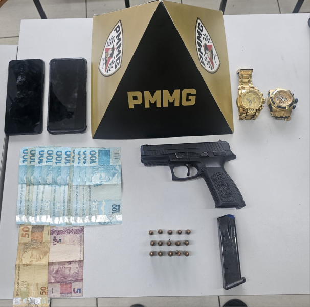 No carro estavam dois indivíduos, de 42 e 43 anos, ambos detentos recém-saídos do sistema prisional, com passagens por roubo à mão armada, sendo um deles também por latrocínio. Durante a busca veicular, os militares localizaram no porta-malas uma pistola automática calibre 9 milímetros, de cor preta, municiada com 15 cartuchos do mesmo calibre.