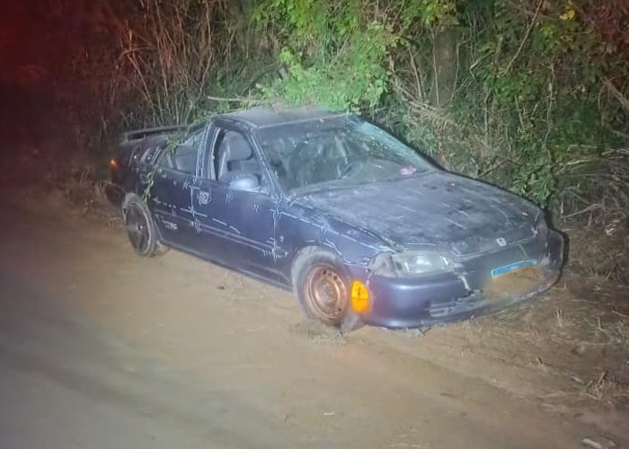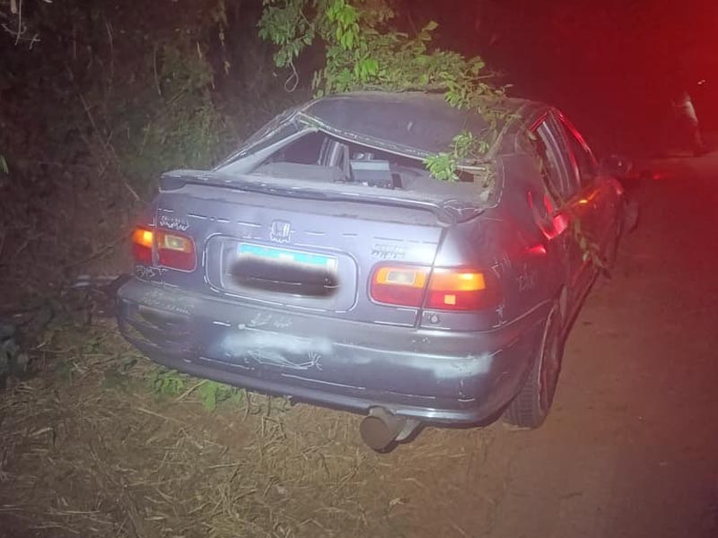 Próximo ao km 18, por motivo ainda não identificado, o motorista perdeu o controle da direção, bateu em um barranco e o veículo capotou, parando às margens da rodovia com o teto no chão.