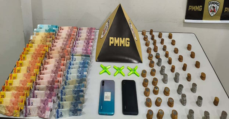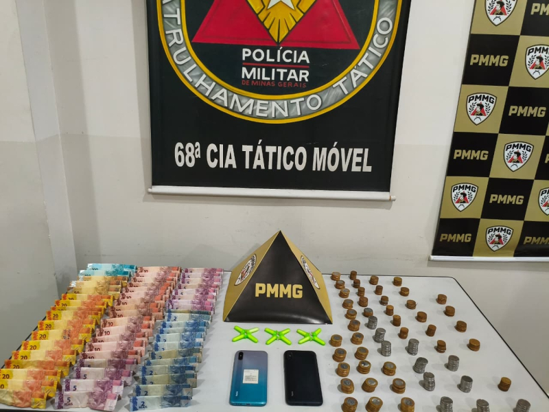 Durante as buscas, os militares localizaram 12 pinos contendo substância semelhante à cocaína, além de R$ 1.092 em dinheiro e dois aparelhos celulares. Todo o material apreendido foi encaminhado à Delegacia de Polícia Civil de Nova Serrana.
