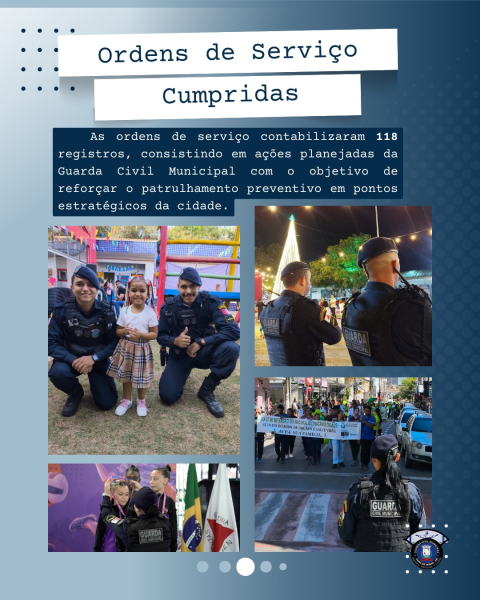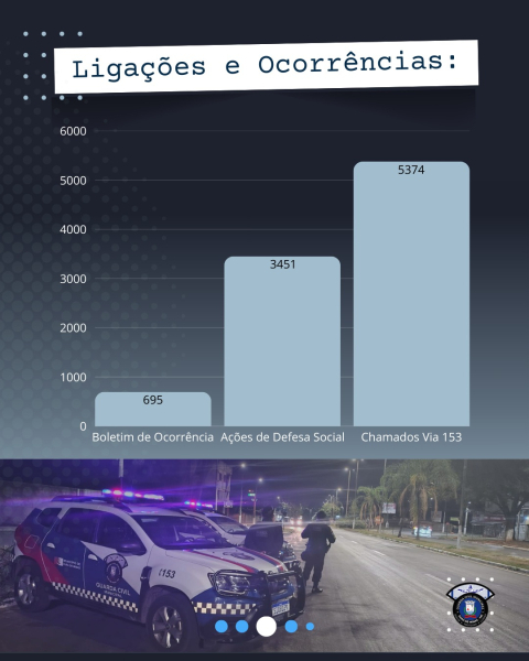 No atendimento à população, o canal 153 registrou 5.374 ligações, resultando em 4.146 atendimentos, incluindo ações de defesa social e registros de ocorrências. A GCM atuou de forma destacada no policiamento preventivo, no trânsito e em ações integradas com outros órgãos de segurança e serviços públicos.