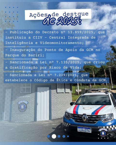 Entre as principais conquistas estão a criação da Central Integrada de Inteligência e Videomonitoramento (CIIV), a inauguração de um ponto de apoio no Parque do Bariri e a sanção de leis que instituíram a Gratificação por Risco de Vida e o Código de Ética e Conduta da corporação.