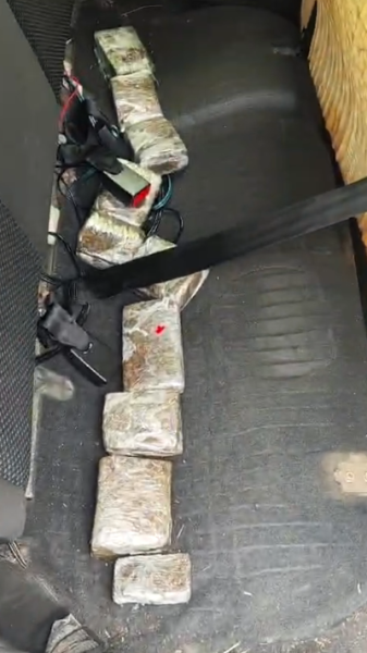 Em buscas no veículo, os policiais localizaram dez barras de maconha escondidas debaixo do banco traseiro, totalizando aproximadamente nove quilos. O suspeito assumiu a propriedade das drogas e afirmou que o destino seria a cidade de Rio Paranaíba (MG).