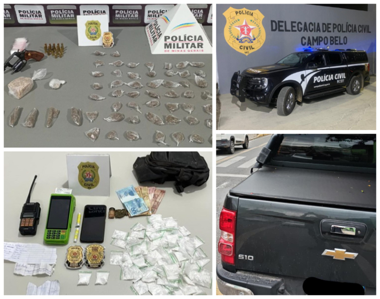 A Polícia Civil, com apoio da Polícia Militar, realizou a operação Goodfellas em Campo Belo, cumprindo seis mandados de prisão temporária, efetuando uma prisão em flagrante por tráfico, apreendendo dois veículos e bloqueando judicialmente 17 imóveis ligados a crimes de tráfico, associação para o tráfico e lavagem de dinheiro.