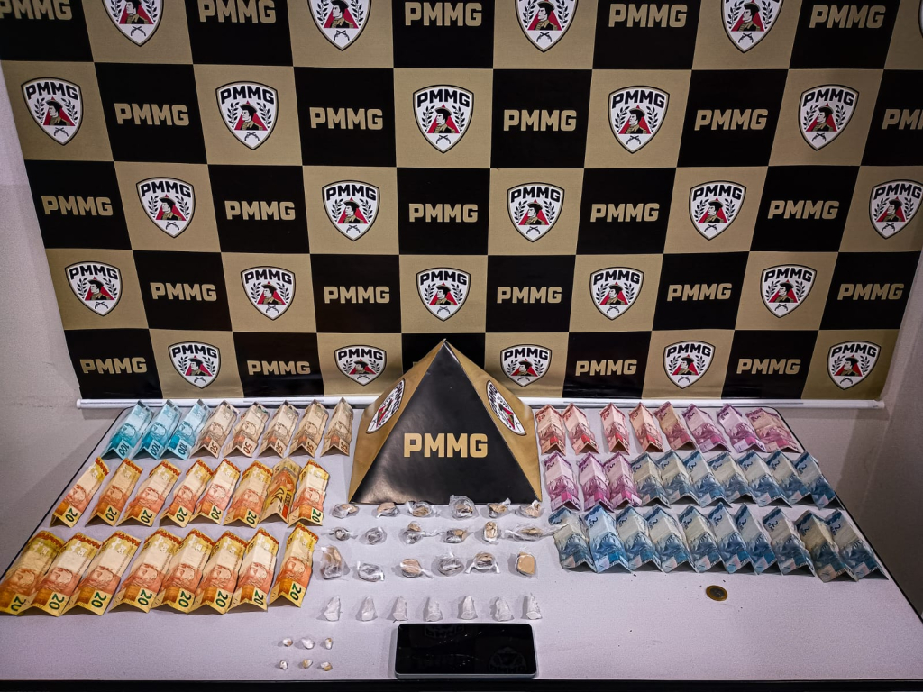 Durante a averiguação, os policiais se depararam com o suspeito que, ao notar a aproximação da viatura, tentou esconder um objeto. Ao ser abordado, foram localizadas seis pedras de substância semelhante ao crack. Em continuidade às buscas na residência do indivíduo, os militares encontraram ainda sete pinos de substância semelhante à cocaína, dezoito porções de substância semelhante à maconha, uma quantia em dinheiro e um aparelho celular.