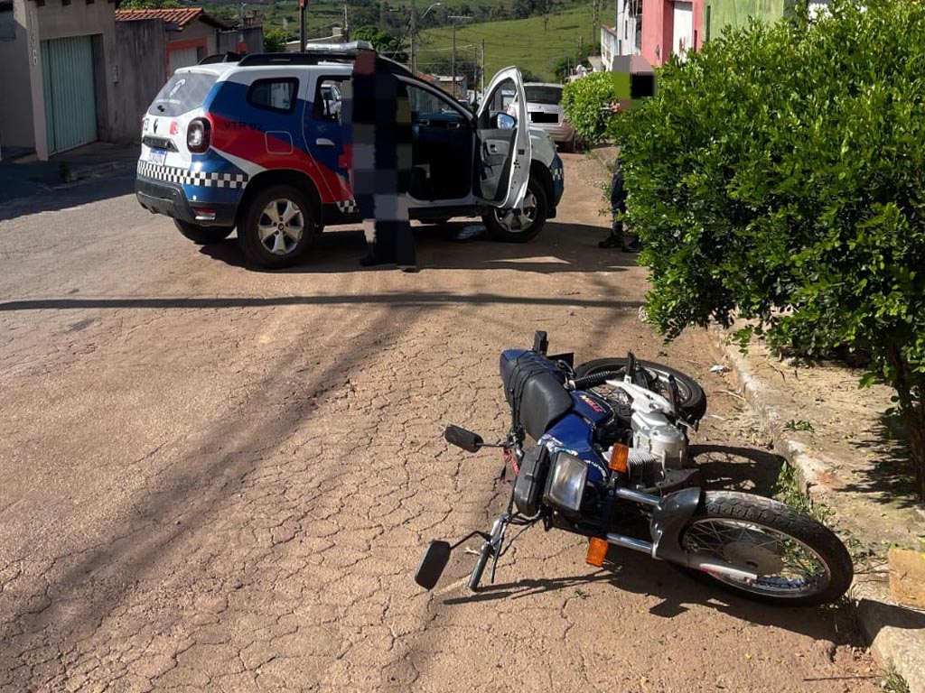 O condutor, ao perceber a aproximação da GCM, se desequilibrou e colidiu com a viatura. Em seguida, o suspeito tentou fugir correndo, sendo contido pelos agentes. A moto foi apreendida e removida para o pátio credenciado por estar com licenciamento irregular.