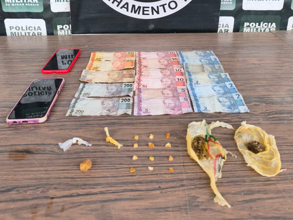 A Polícia Militar prendeu um casal suspeito de tráfico de drogas na cidade de Pompéu, após receber uma denúncia anônima sobre movimentação suspeita em uma casa no bairro Várzea das Flores. A ação aconteceu no dia 16 de março, durante operação de recobrimento do Tático Móvel. Quando os militares chegaram ao endereço, flagraram um homem saindo da residência. Durante a abordagem, foi encontrada com ele uma pedra de crack. Dentro da casa, estavam um homem e uma mulher. Ao perceber a presença da polícia, o suspeito tentou fugir pulando o muro dos fundos, mas acabou sendo alcançado e detido.