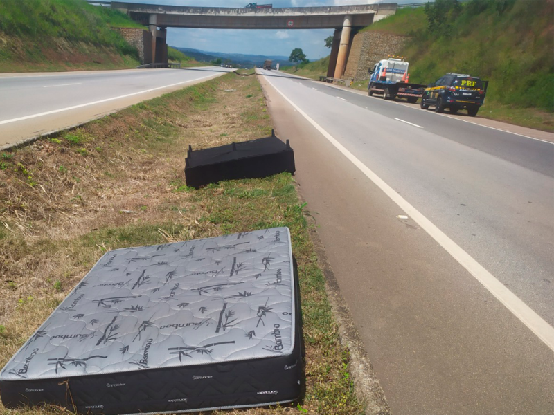 Carga se solta de guincho na BR-262 e provoca acidente com ferida leveNa manhã deste sábado (28), por volta das 11h20, um incidente na BR-262, no km 437, próximo ao posto Oásis, chamou a atenção de quem passava pelo local e terminou com uma pessoa ferida. De acordo com as informações, um caminhão guincho seguia sentido Pará de Minas transportando uma caminhonete, além de uma cama box de casal e um colchão na prancha. Durante o trajeto, a cama e o colchão acabaram se soltando e caíram no meio da pista.