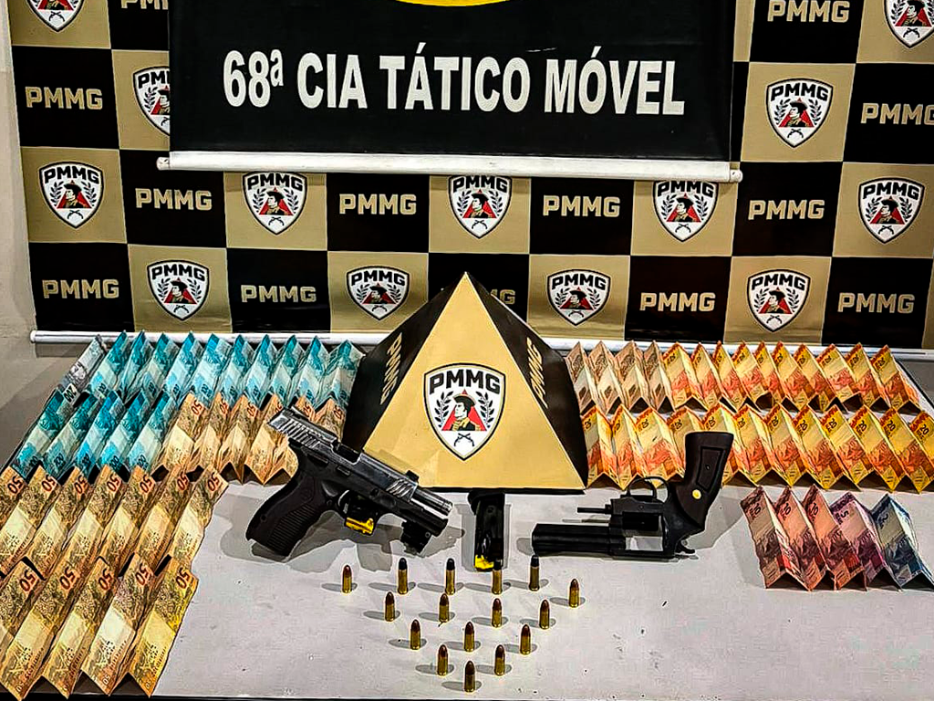 Durante as buscas, foram apreendidos um revólver calibre .38 carregado, uma pistola aparentemente calibre 9mm também municiada, além de um carregador com munições e R$ 3.377,00 em dinheiro. Três homens, com idades de 20, 24 e 20 anos, foram presos por posse ilegal de arma de fogo. Dois deles já eram considerados foragidos da Justiça. Um dos suspeitos ainda usava tornozeleira eletrônica adulterada, tentando dificultar o monitoramento. Os detidos foram encaminhados para a Delegacia de Polícia Civil junto com todo o material apreendido. A ação rápida da Polícia Militar reforça o combate à criminalidade e garante mais segurança, principalmente nas comunidades rurais.