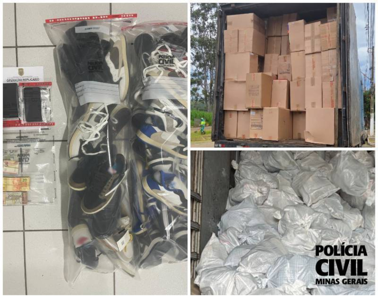 A Polícia Civil apreendeu cerca de 15 mil pares de tênis com indícios de falsificação em cidades mineiras, incluindo Nova Serrana, durante a operação “Replicário”. A ação também resultou no bloqueio de aproximadamente 10 milhões de reais em ativos financeiros. A operação investiga uma organização criminosa suspeita de atuar na falsificação e venda de calçados de marcas importadas, além de lavagem de dinheiro.