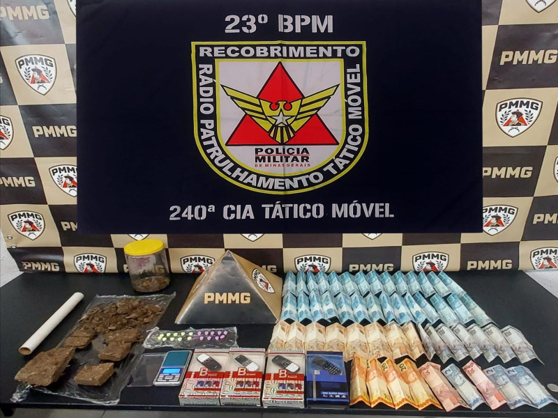 Os militares foram até o local e realizaram buscas no imóvel. No corredor de entrada da casa, os policiais encontraram uma caixa contendo cinco tabletes de maconha, além de várias porções da mesma droga, uma balança de precisão e R$ 20 em dinheiro.