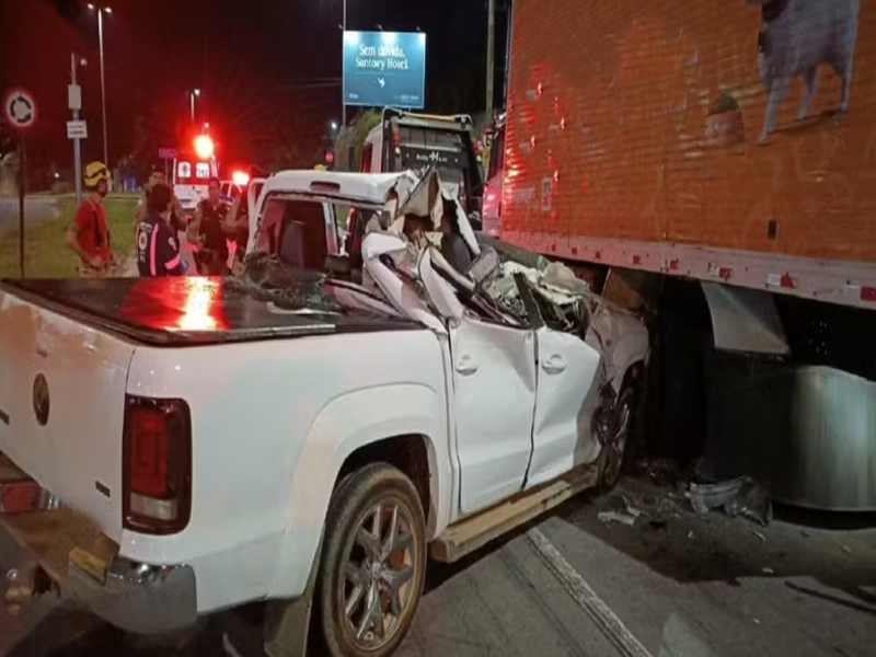 O acidente envolveu a caminhonete Amarok, onde Luciene era passageira, e um caminhão-baú que estava parado no lado direito da avenida, próximo à rotatória de um posto de combustíveis, aguardando o guincho.