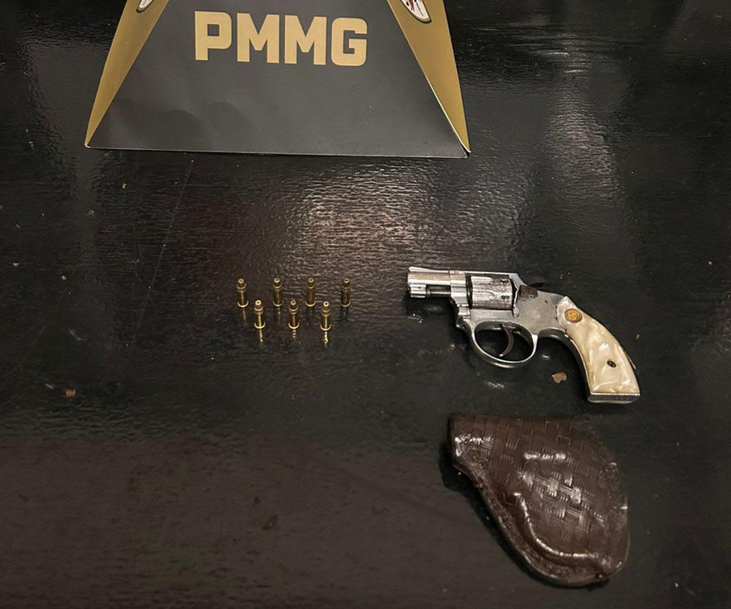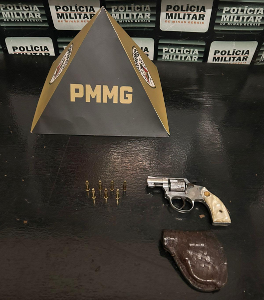 Durante buscas em seu veículo, foi localizado um revólver calibre .22, além de 7 munições intactas do mesmo calibre. O suspeito confirmou a propriedade da arma, sendo preso em flagrante e conduzido à Delegacia.