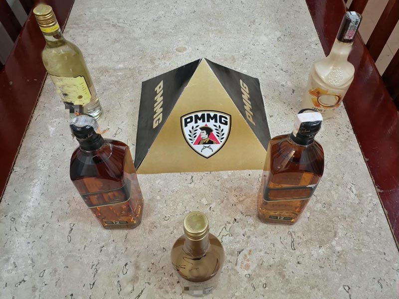 Durante a fiscalização, foram apreendidas cinco garrafas com indícios de irregularidade. Três eram bebidas importadas sem rótulo em português e sem comprovação fiscal. Outras duas garrafas de whisky apresentavam sinais de possível falsificação, como alteração na cor do líquido, selo incompatível, lacre rompido e indícios de reutilização da embalagem.